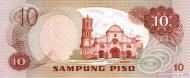 Памятная банкнота: Инаугурация президента Фердинанда Эммануэля Эдралина Маркоса 30 июня 1981 года. Революционер, философ, масон, первый премьер-министр Аполинарио Мабини и Маранан, эмблема Центрального банка. Деревья, колокольня и фасад католической церкви Кармельской Богоматери (церкви Барасоаин) в городе Малолос в провинции Булакан, в которой была принята первым Конгрессом Филиппин конституция и провозглашена первая республика.