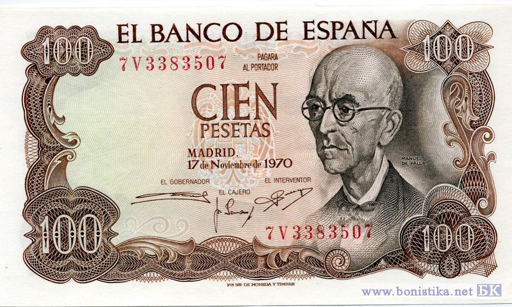 100 Pesetas (тип 1), 1970
