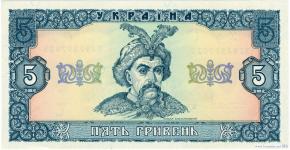 5 Гривень (тип c), 1992