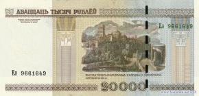 Модификация 2011 г. Защитная нить. Аверс: дворец Румянцевых и Паскевичей (Гомель). Реверс: вид на дворец Румянцевых и Паскевичей с картины художника А.Идзковского. Водяной знак: ваза.