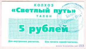 Нижнее-Ингашский р-он Красноярского края Касьяново, колхоз «Светлый путь». Талон (Для внутренних расчетов) зеленого цвета. Без печати недействителен, печать красная - не живущие в колхозе. 10112-421 ( П.Рябченко ) односторонние