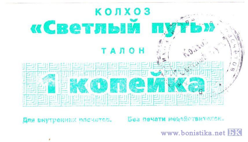 Нижнее-Ингашский р-он Красноярского края Касьяново, колхоз «Светлый путь». Талон (Для внутренних расчетов) зеленого цвета. Без печати недействителен, печать фиолетовая – для растениеводов. 10112-375-390 ( П.Рябченко ) односторонние