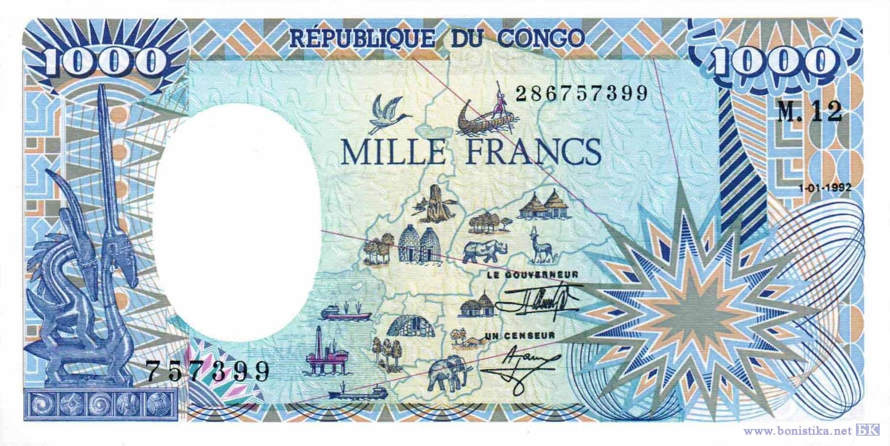 1000 Francs (тип а), 1992