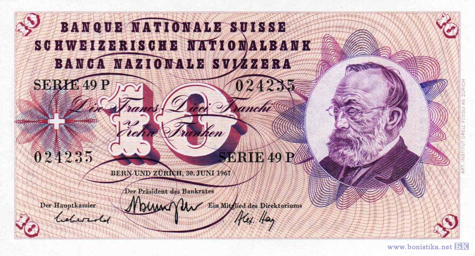 10 Franken (тип m2), 1967