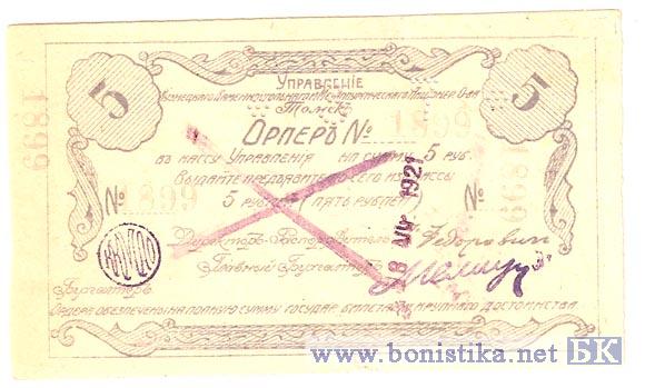 5 Рублей (ошибка ОРПЕР), 1921