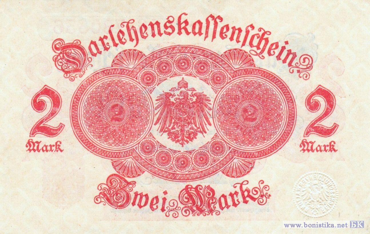 Тип а1. Без фоновой сетки. Лицевая и оборотная сторона светло-красного цвета, красная печать Имперского долгового управления внизу справа на лицевой стороне, серии с 1 по 180. Принтер: RB - Reichsdruckerei, Berlin.