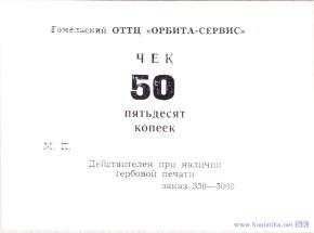 БССР Гомельский ОТТЦ "Орбита-Сервис" чек
