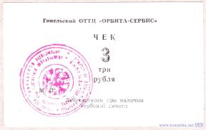 БССР Гомельский ОТТЦ "Орбита-Сервис" чек
