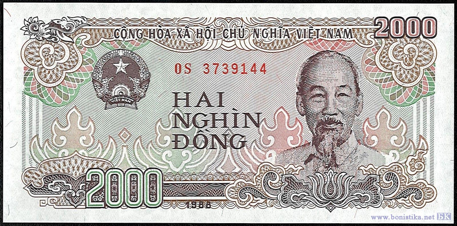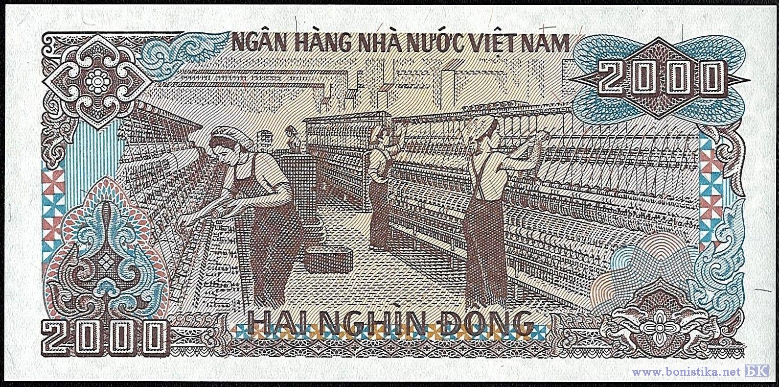 Тип а. Маленькие цифры в серийном номере. Банкнота выпущена в обращение в 1989 году. Президент Хо Ши Мин (Нгуен Шинь Кунг). Работницы в цехе текстильного комбината в г. Хайфон.