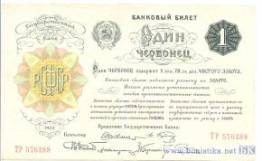 Введены в действие постановлением СНК от 11/10/1922, как параллельная твёрдая валюта. Односторонняя. 4 варианта подписей.