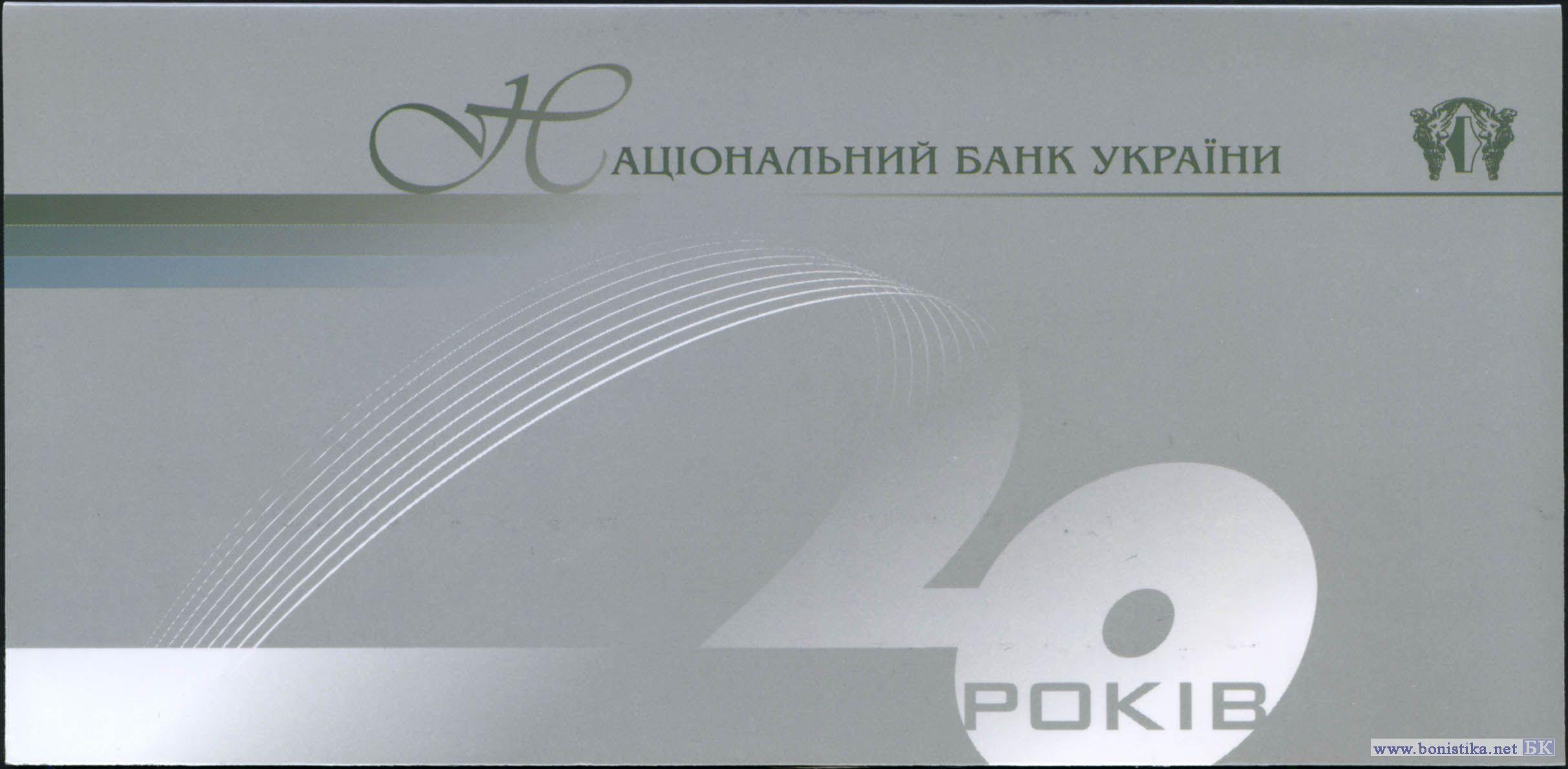 Аверс: портрет Михаила Грушевского, памятная эмблема-голограмма "20 рокiв НБУ".