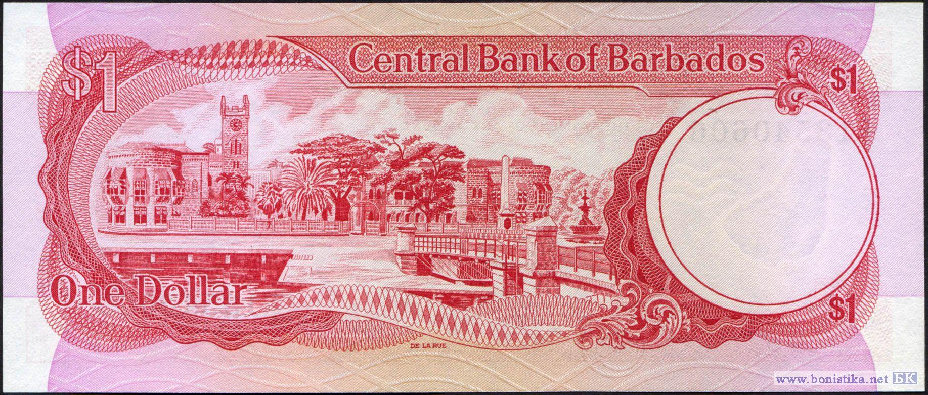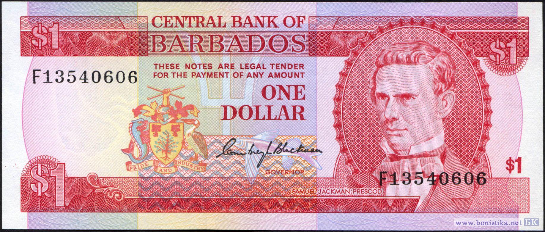 Серийные номера 2-го типа: Одна буква, две цифры и шесть цифр. Национальный герой, журналист, политик, судья, один из основателей Либеральной партии, первый человек африканского происхождения выбранный в 1843 году в парламент Барбадоса Сэмюэл Джекмен Прескод. Здание парламента на Трафальгарской площади (ныне площадь Национальных героев) в г. Бриджтаун.