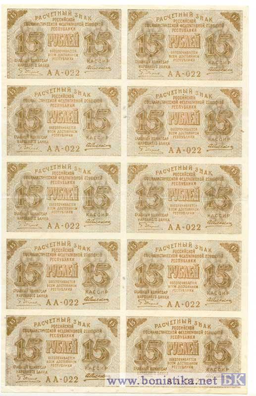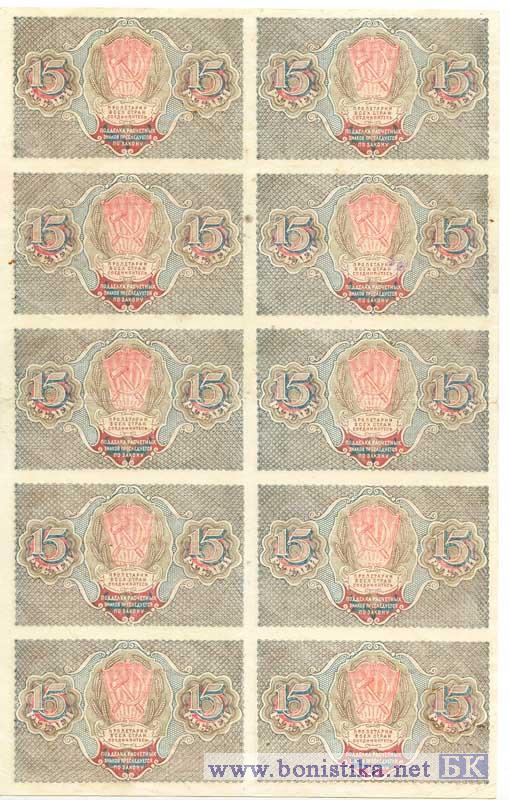 15 рублей (полный лист 2*5), 1919