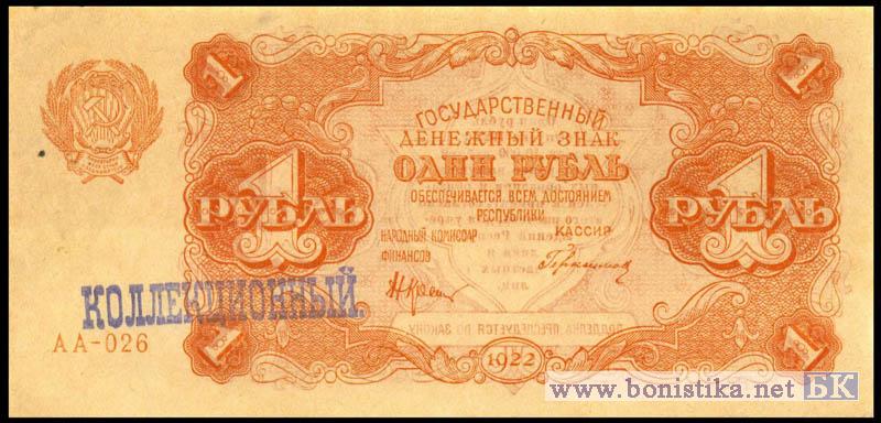 1 рубль 1922 Н.Крестинский-Герасимовский Надпечатка \"КОЛЛЕКЦИОННЫЙ\"