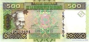 1985, 500 Francs Guineens (тип b) (разновидность)
