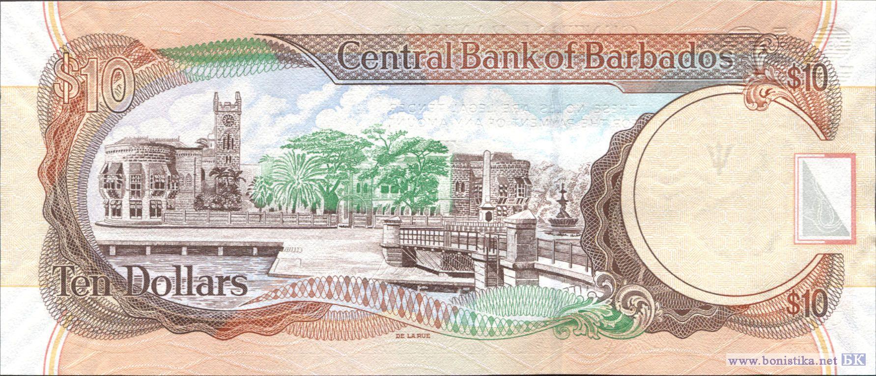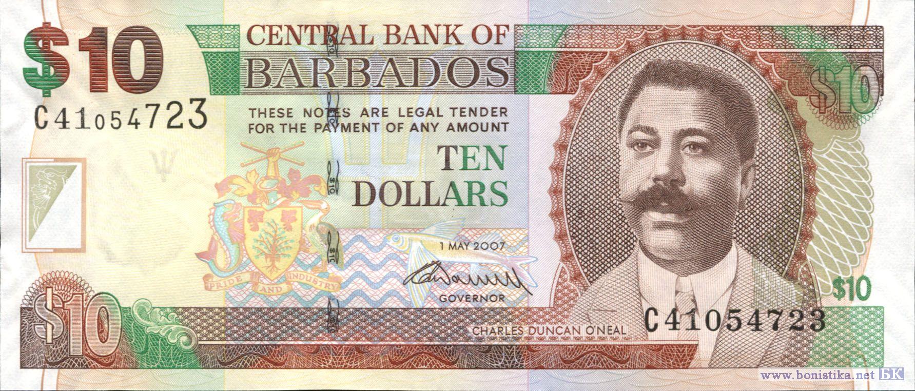 Тип b. Вариант подписи: DeLisle Worrell. Банкнота выпущена в обращение в 2010 году. Национальный герой, врач, политик Чарльз Дункан О’Нил. Здание парламента на площади Национальных героев (бывшей Трафальгарской площади) в г. Бриджтаун.