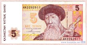 Выпуск 1993 года. Принтер: Harrison & Sons. Серии АА...-...АР. В обращении с 15 ноября 1993 года по 14 ноября 2007 г. На аверсе портрет казахского композитора, народного музыканта Курмангазы Сагырбайулы. На реверсе изображение мавзолейного комплекса. Преобладающие цвета: коричневый,оранжевый.Подпись: Галым Байназаров, председатель правления Национального банка РК (21.01.1992 - 20.12.1993).