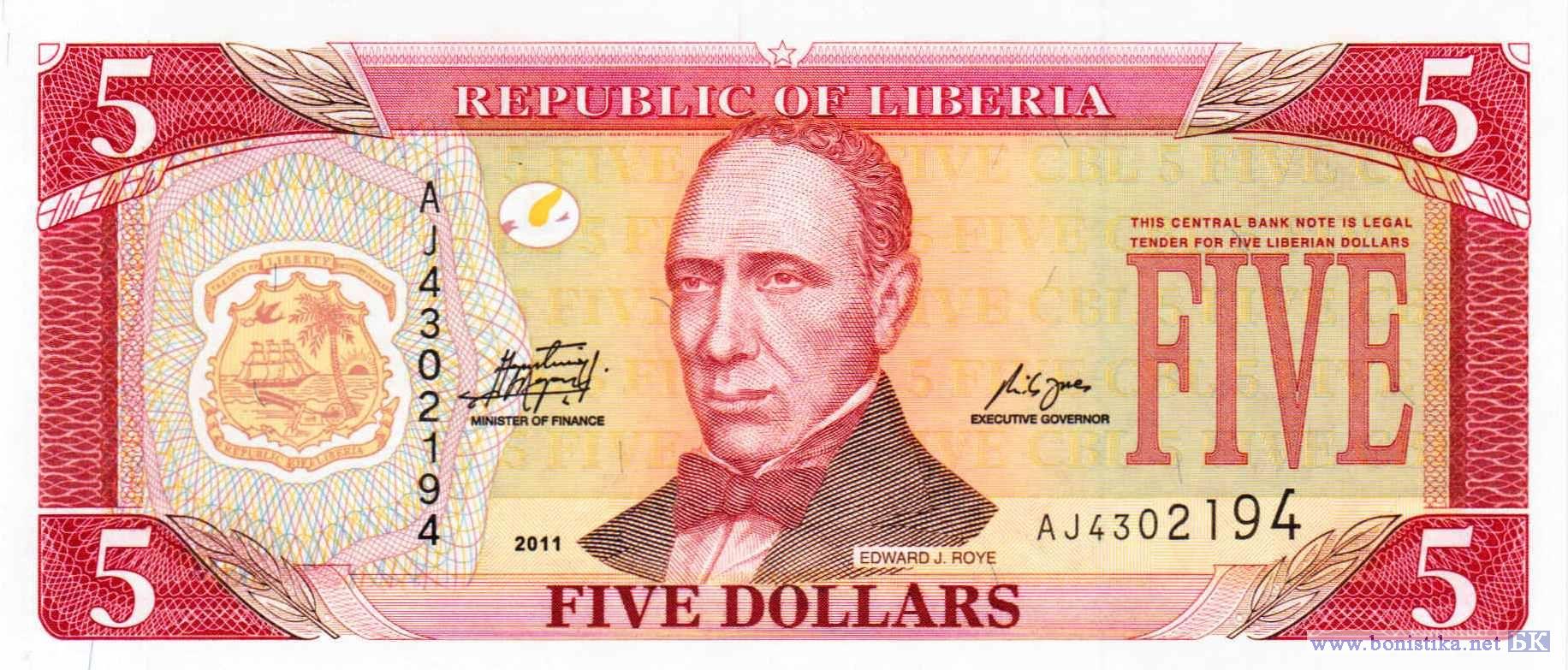 С лаковыми узорами по периметру и дополнительным защитным элементом вверху справа от центра на лицевой стороне банкноты. Вариант подписей № 8: Augustine Kpehe Ngafuan - Joseph Mills Jones.
