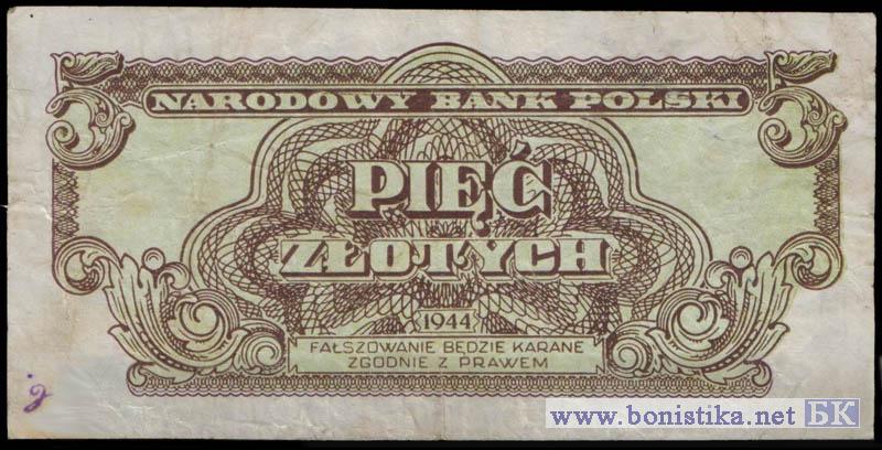 5 Zlotych (тип 1), 1944