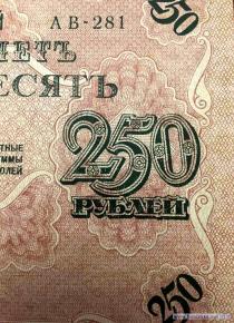 билет номиналом 250 рублей. В связи с тем, что у правительства не было времени на разработку образцов с новой