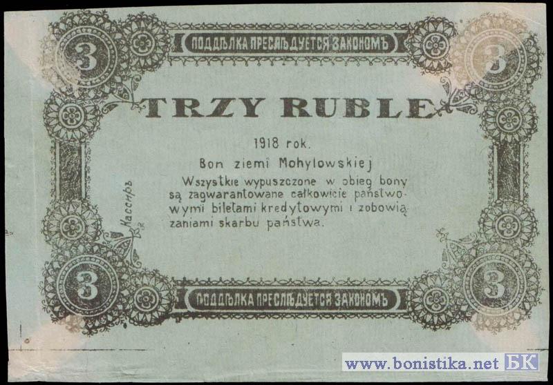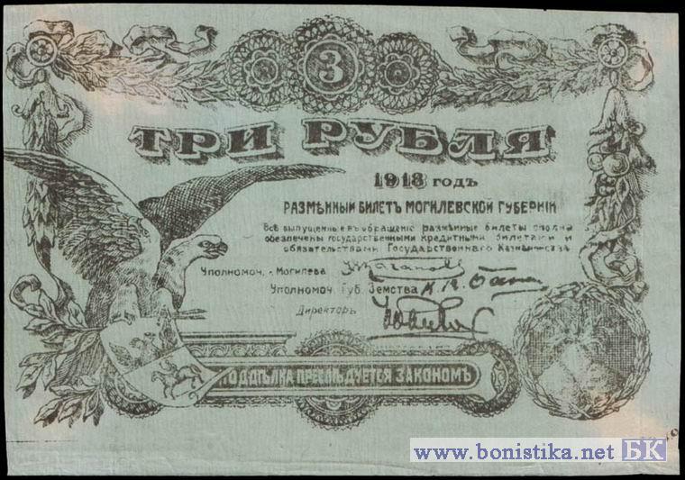 3 рубля 1918 года. Бланк разменного билета Могилевской губернии.