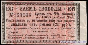 25 рублей (купон от 1000 рублей ЗС), 1918