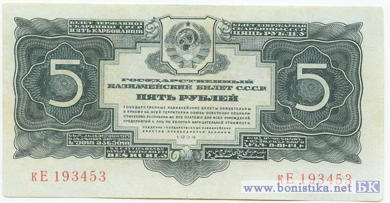 5 рублей (без подписи, двухлитерный), 1934