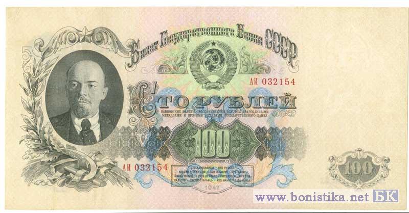 Ходили до реформы 1961 года. Всего было выпущено две разновидности купюр, отличающихся числом витков ленты в гербе СССР: у первого выпуска их было 16, у второго (1957 года) -15. Соответственно изменилось и число надписей "сто рублей" на языках союзных республик. Использовалось 2 типа шрифта (в шрифте было 25 букв).