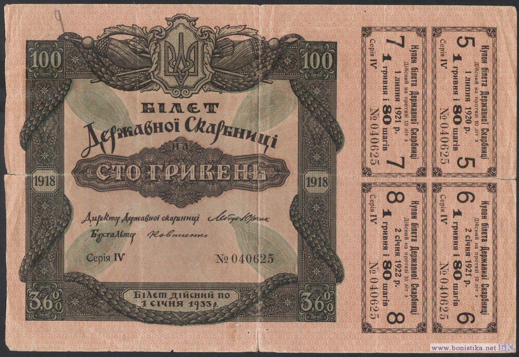 1918.04.29 - 1918.12.14 Українська Держава (гетьман Скоропадський) / 3,6% Білет Державної Скарбниці
