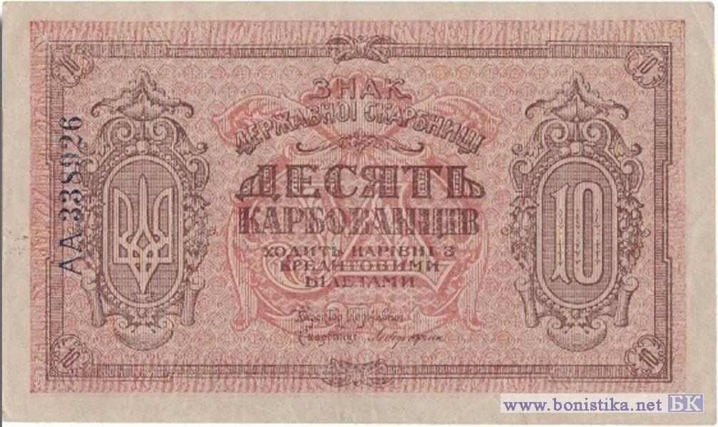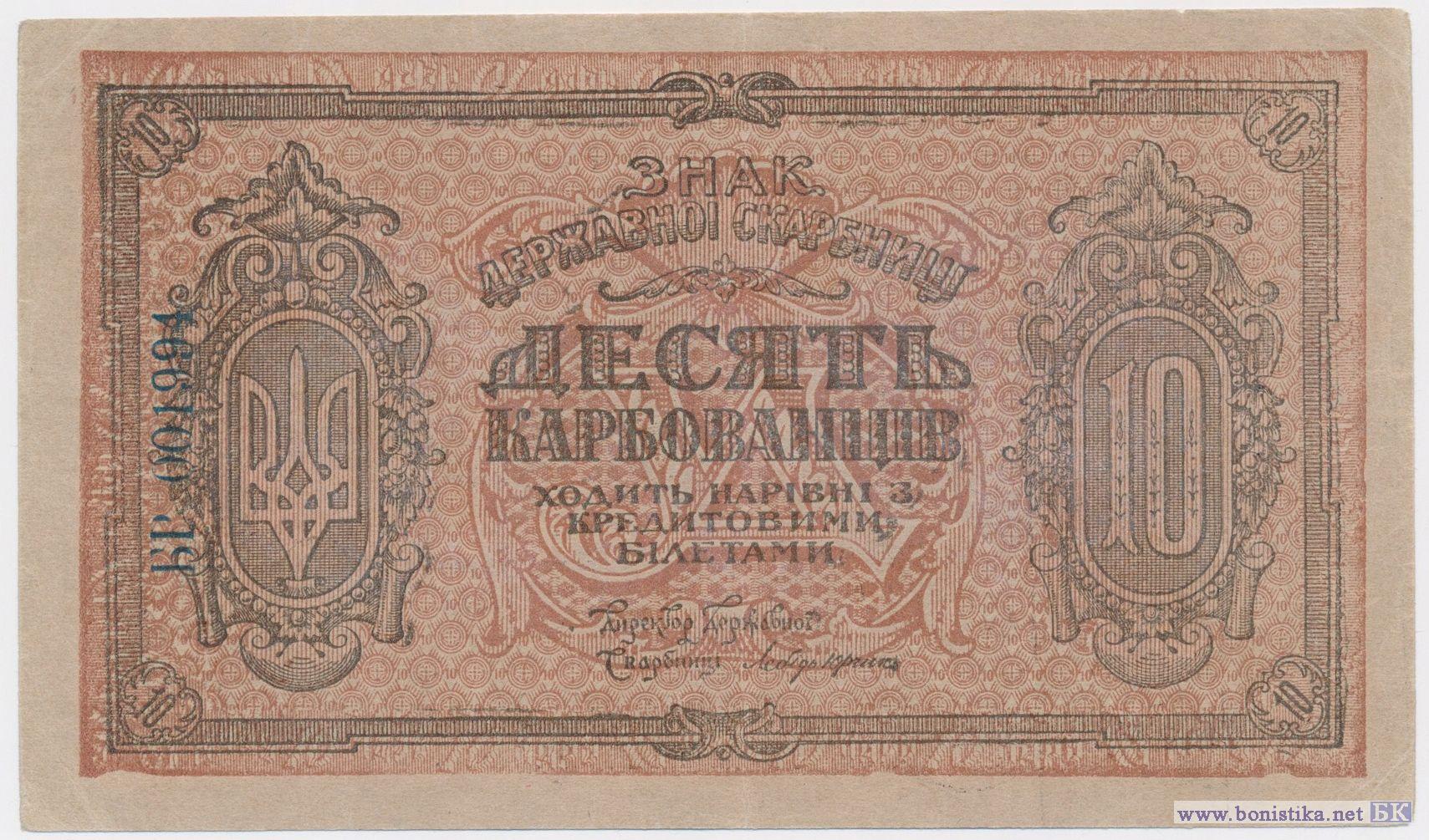 10 Карбованцiв (серія АБ), 1919