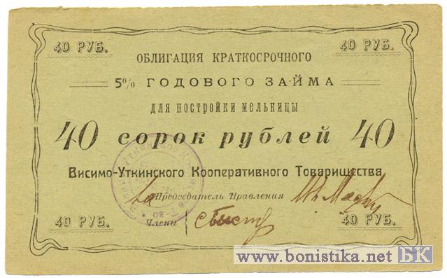 Висимо-Уткинск (ч.) / Кооперативное товарищество. Облигации для постройки мельницы