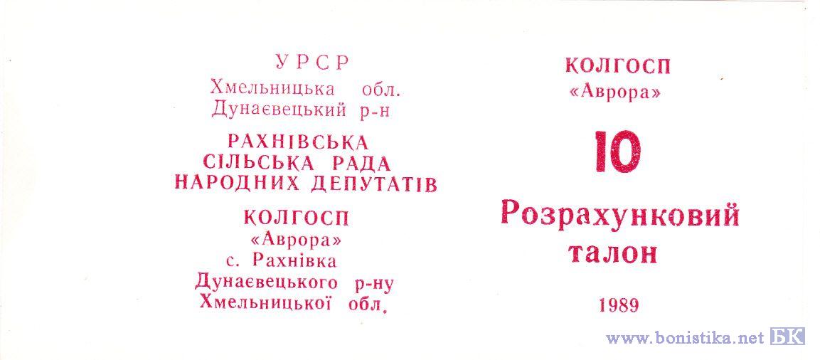 УССР, Хмельницкая обл., Дунаевецкий р-он, село Рахнивка , колхоз «Аврора» 1989