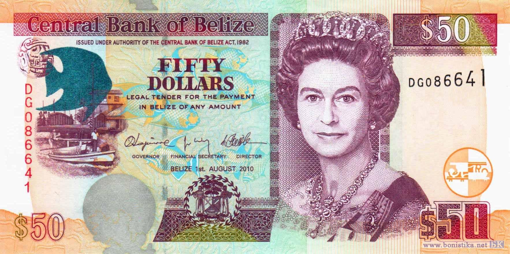 Тип d. Вариант подписей: Glenford Ysaguirre - Joseph Waight - John Mencias. Принтер: DE LA RUE.