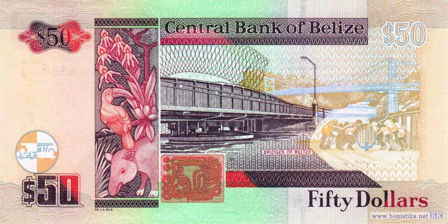 Нефритовая голова бога солнца индейцев майя Кинич Ахау, разводной мост через канал Хауловер Крик в городе Белиз, открытый для прохода лодки, является единственным в мире действующим разводным мостом с ручным управлением, пальма, фрагмент здания, стилизованное изображение кораллов, королевские спинороги или кочино (Balistes vetula) – тропические морские лучепёрые рыбы семейства спинороговых, стая рыб-ангелов, королева Великобритании Елизавета II, стилизованное изображение декоративного элемента поручней разводного моста. Стилизованное изображение декоративного элемента поручней разводного моста, цветонос и листья чёрной орхидеи (Prosthechea cochleata) - многолетнего эпифитного травянистого растения семейства орхидных или ятрышниковых, цветок орхидеи является национальным цветком Белиза, радужный тукан (Ramphastos sulfuratus) – дятлообразная птица семейства тукановых, центральноамериканский тапир или тапир Бэрда (Tapirus bairdii) – млекопитающее семейства тапировых, стилизованное изображение фрагмента барельефа индейцев майя из археологических раскопок в Шунантунич, фрагмент разводного моста в городе Белиз, деревья, фрагмент подвесного моста Хоксворт через реку Мопан, соединяющего города Санта-Елена и Сан-Игнасио в регионе Кайо, рабочие, приводящие в действие рычагом механизм ручного поворота разводного моста.