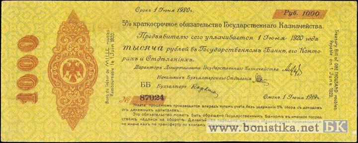 5% краткосрочное обязательство государственного казначейства. 1 июня 1919 - 1 июня 1920.