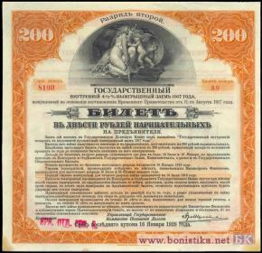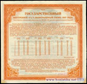 Государственный внутренний 4,5% выигрышный заем 1917 года. Разряд второй. Штамп Иркутского отделения государственного банка (Красный ИРК. ОТД.ГОС.Б.)