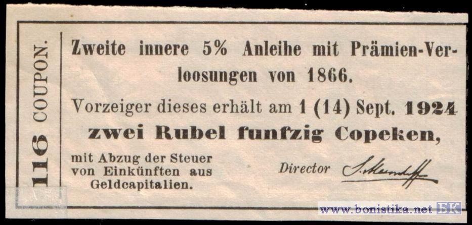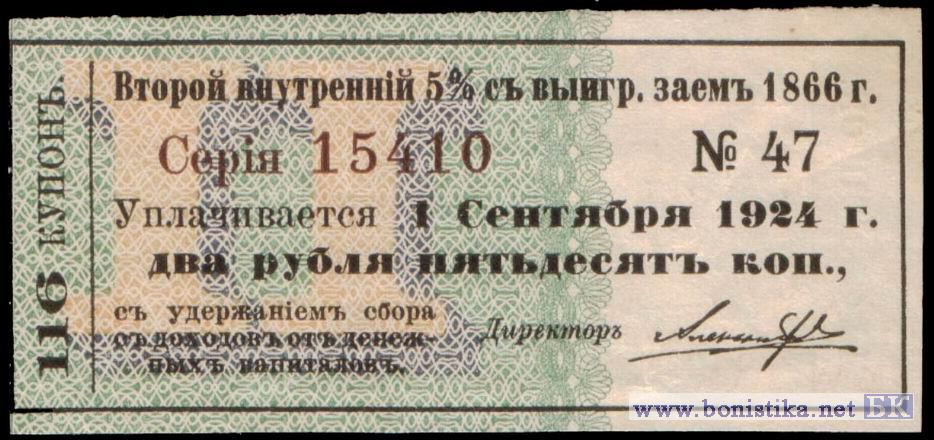 1918 г. Второй внутренний 5% с выигрышем заем 1866 года