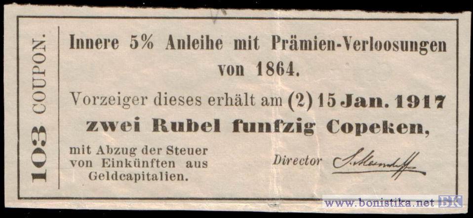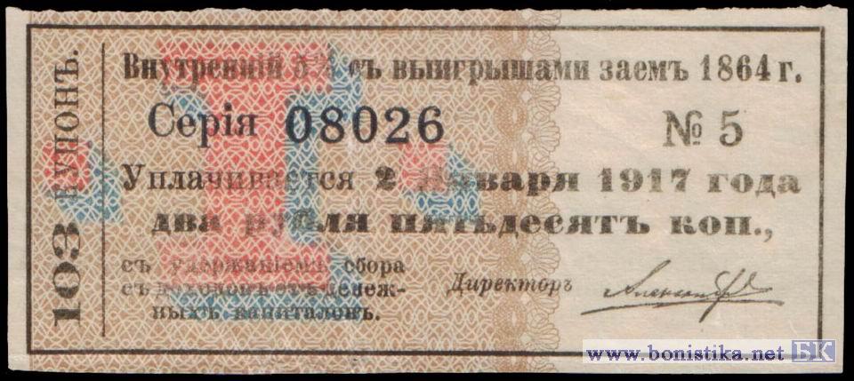 • 1918 г. Внутренний 5% с выигрышами заем 1864 года