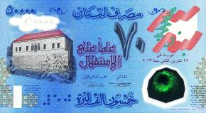 Полимерная банкнота, выпущенная в честь 70-летия независимости Ливана (от Франции).