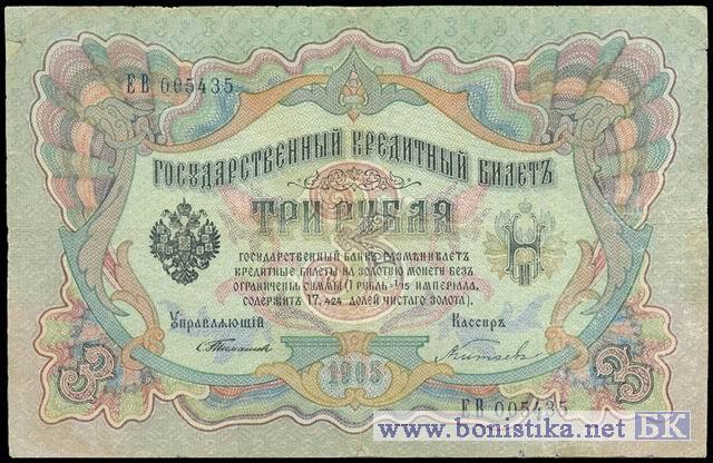 3 Рубля (Тимашев-Китаев), 1905