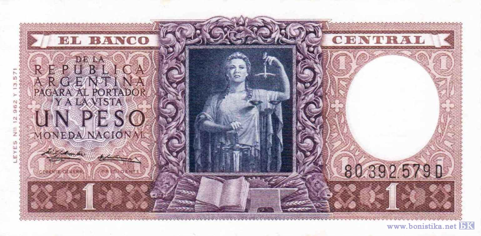 MONEDA NACIONAL - LEYES 12.962 y 13.571. подпись MAZAFERRI- LAURENCENA, без надписи POLITICA в овале.