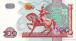 Цвета: красный, зеленый. На лицевой стороне купюры изображен герб Узбекистана в окружении национальных орнаментов. На оборотной стороне купюры изображен памятник Амиру Темуру в Ташкенте.