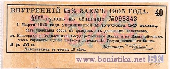• 1918 г. Внутренний 5% заем 1905 года