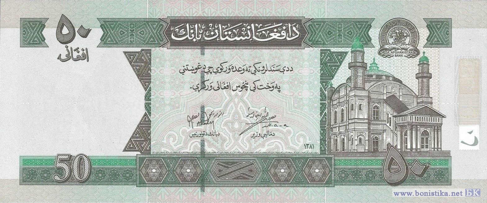 Подписи: Wahidullah Nosher (глава Центробанка) и Mohammad Humayon Qayoumi (министр финансов).