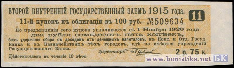1918 г. Второй внутренний государственный заем 1915 года