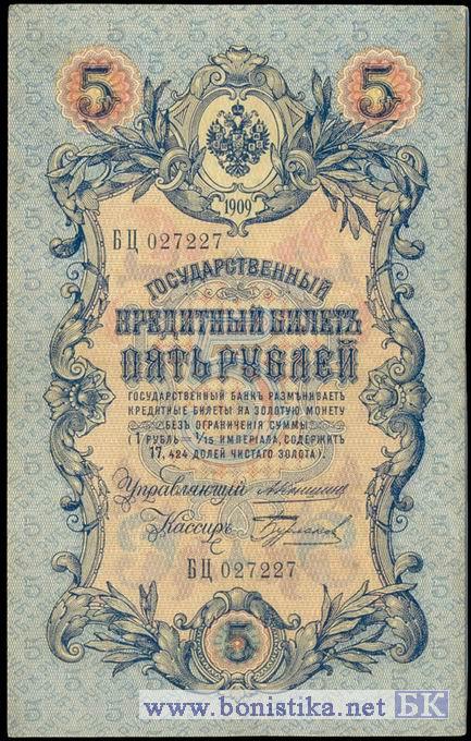 5 рублей 1909 года. А.Коншин-Бурлаков