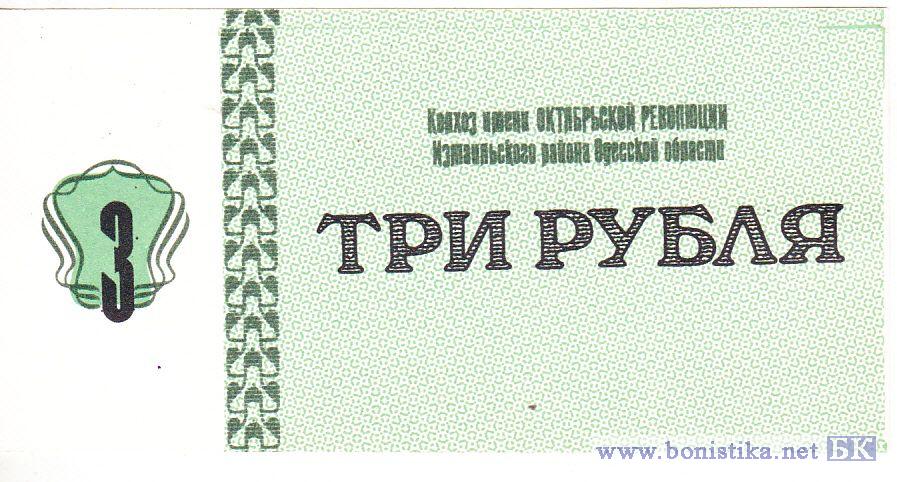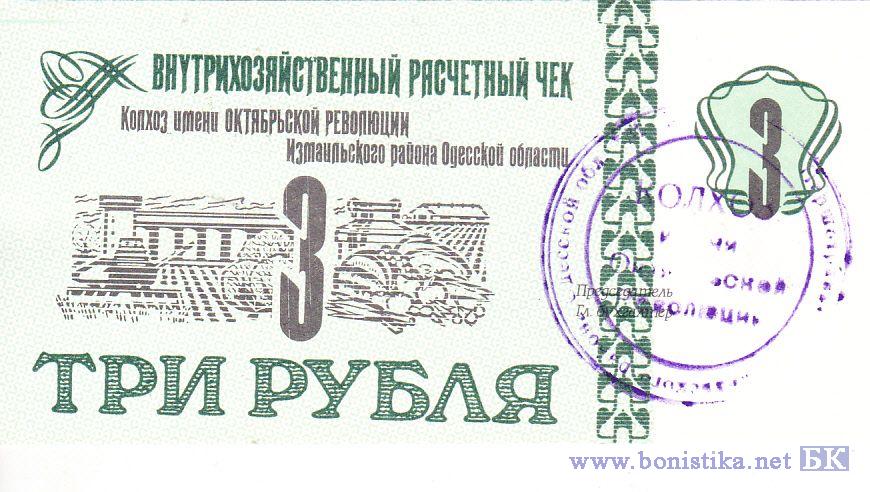 На аверсе печать колхоза им.Октябрьской Революции. На реверсе треугольная печать "Касса ОПЛАЧЕНО" СБК "Проминь" (на украинском языке).