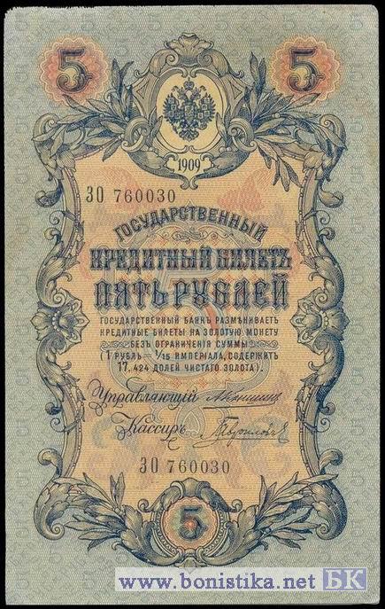 5 рублей 1909 года. А.Коншин-Гаврилов