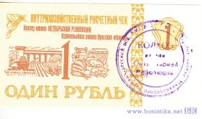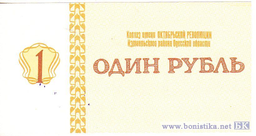 На аверсе печать колхоза им.Октябрьской Революции. На реверсе треугольная печать "Касса ОПЛАЧЕНО" СБК "Проминь" (на украинском языке).