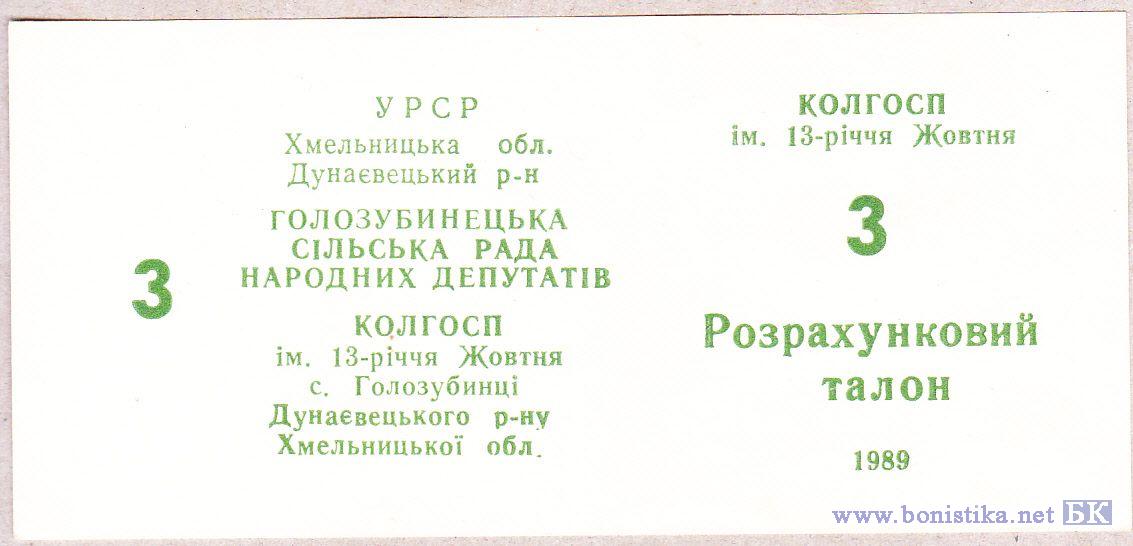 1989, 3 Рубля (бланк, тип 2) (разновидность)